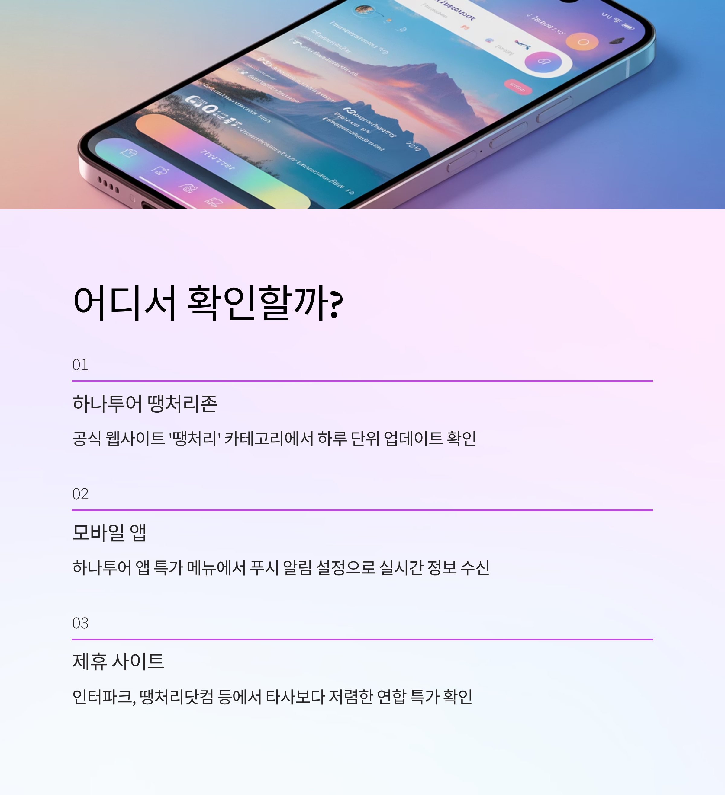 하나투어는 공식 웹사이트 외에도 다양한 채널에서 땡처리 특가 정보를 실시간 제공합니다. 아래 표는 활용 가능한 채널과 특징을 정리한 것이에요.