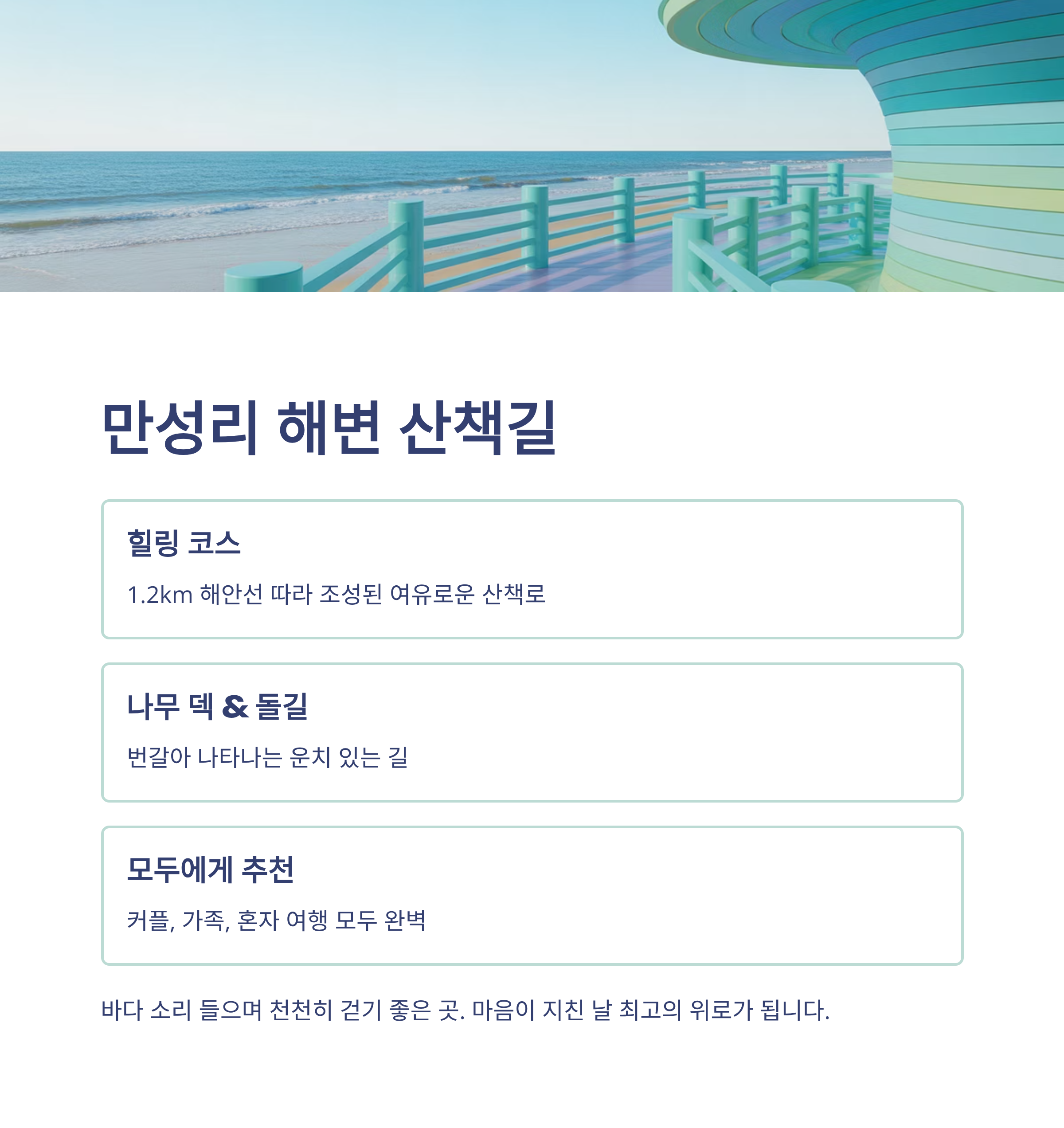 강화도의 조용한 매력을 느끼고 싶다면, 만성리 해변 산책길을 꼭 걸어보세요. 사람이 많지 않아 여유롭고, 바다 소리를 들으며 천천히 걷기에 정말 좋습니다. 마음이 지친 날엔 이런 곳이 제일 위로가 되더라구요.