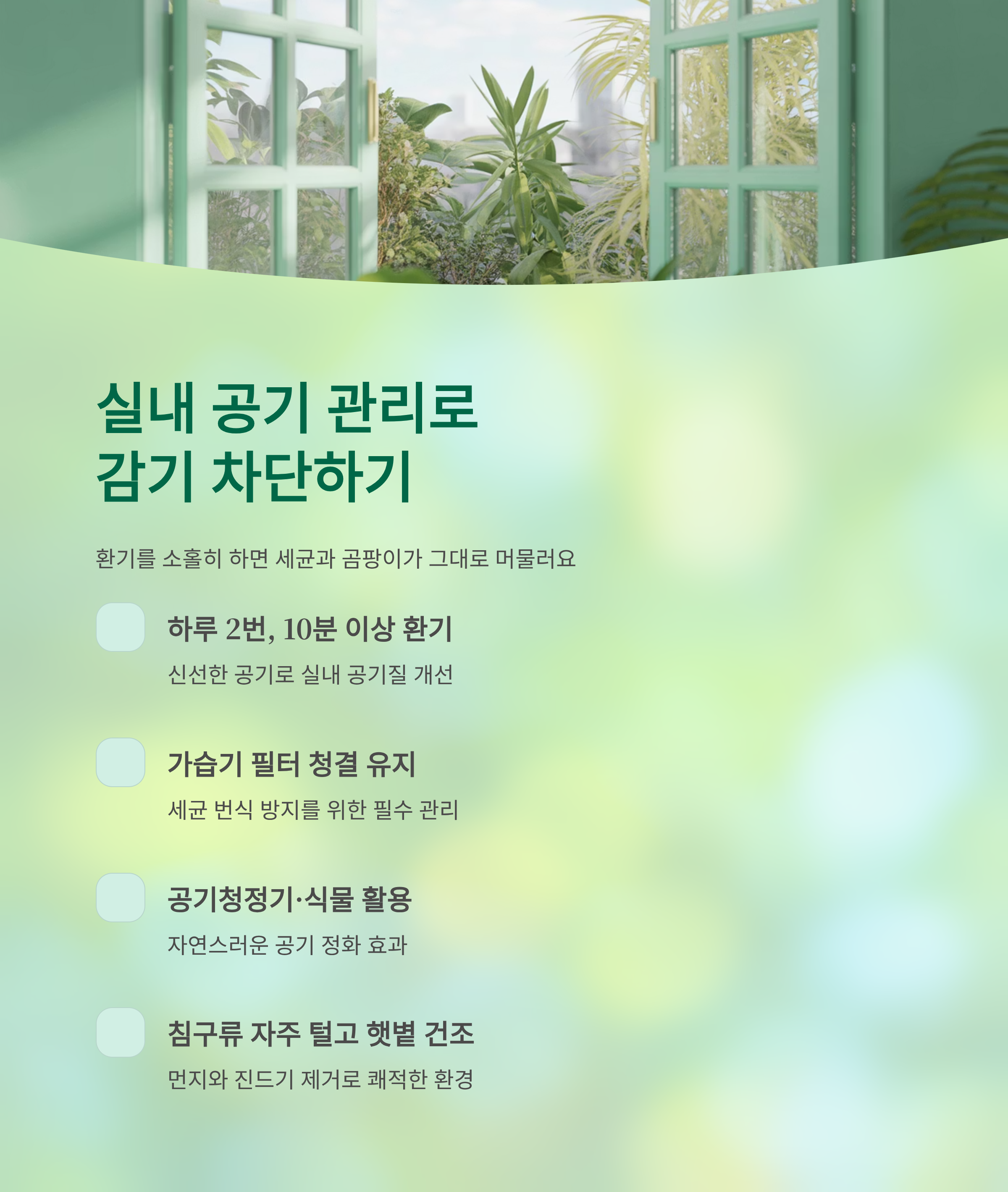 - 하루 2번, 10분 이상 환기하기